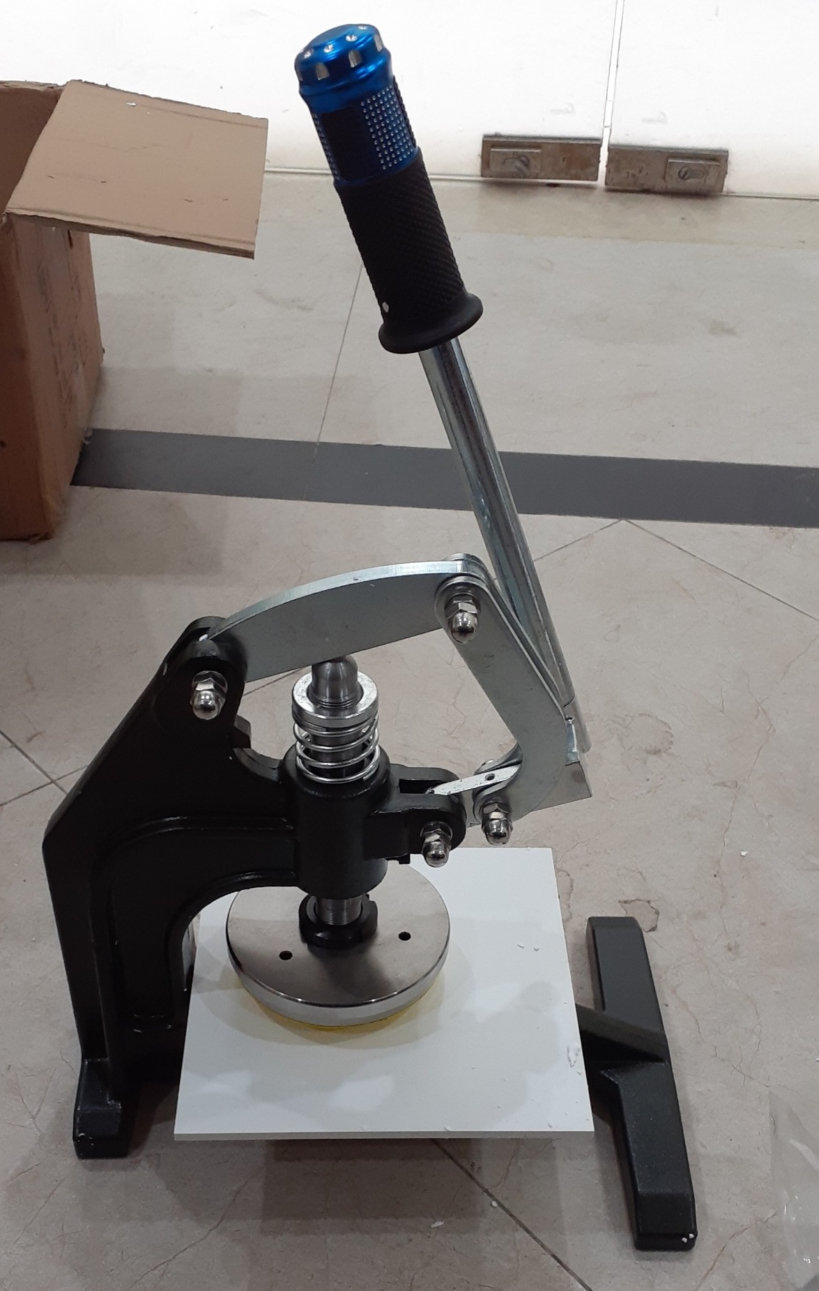 Thiết bị cắt mẫu vải ra đúng 100cm vuông để cho khách hàng cân và quy đổi trọng lượng
